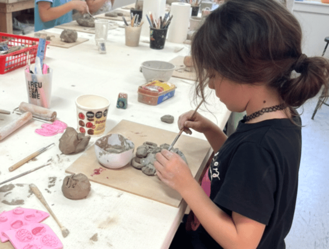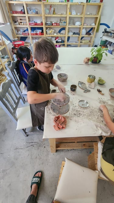 En este espacio, las infancias trabajan con arte y cerámica desde el juego y la exploración, sin exigencias ni modelos a copiar. Cada encuentro propone materiales y consignas abiertas que invitan a probar, equivocarse, volver a intentar y encontrar una forma propia de hacer.