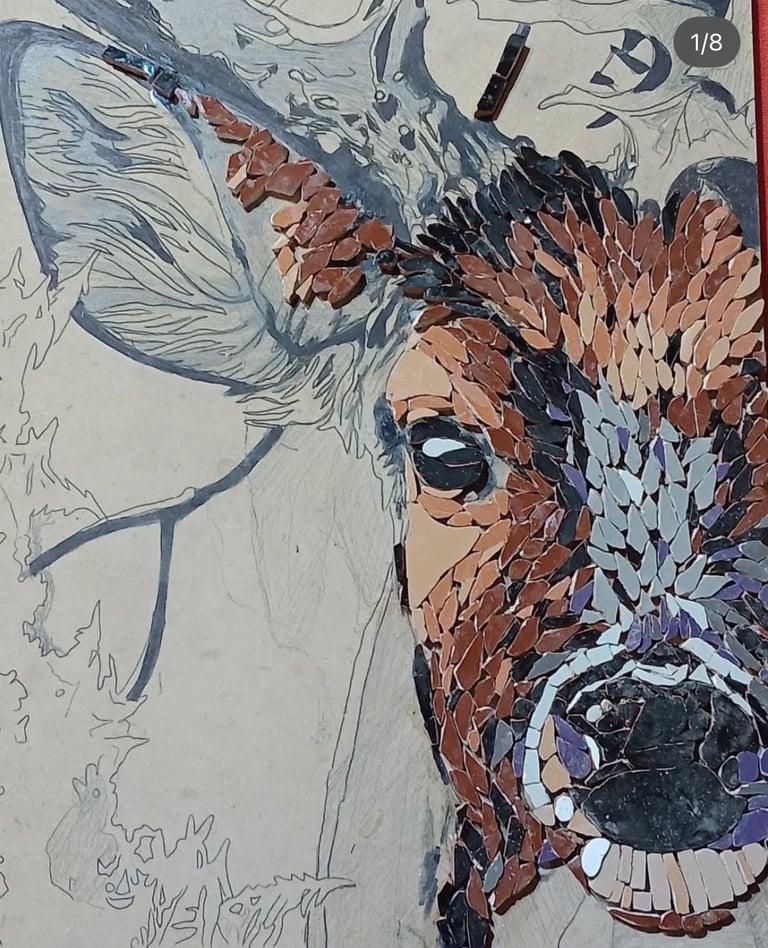 A lo largo de los encuentros desarrollás proyectos propios, viendo cómo una imagen se construye fragmento a fragmento hasta volverse sólida, armónica y duradera. Crear mosaico es entrenar la paciencia, el ojo, la compresión y las manos al mismo tiempo.