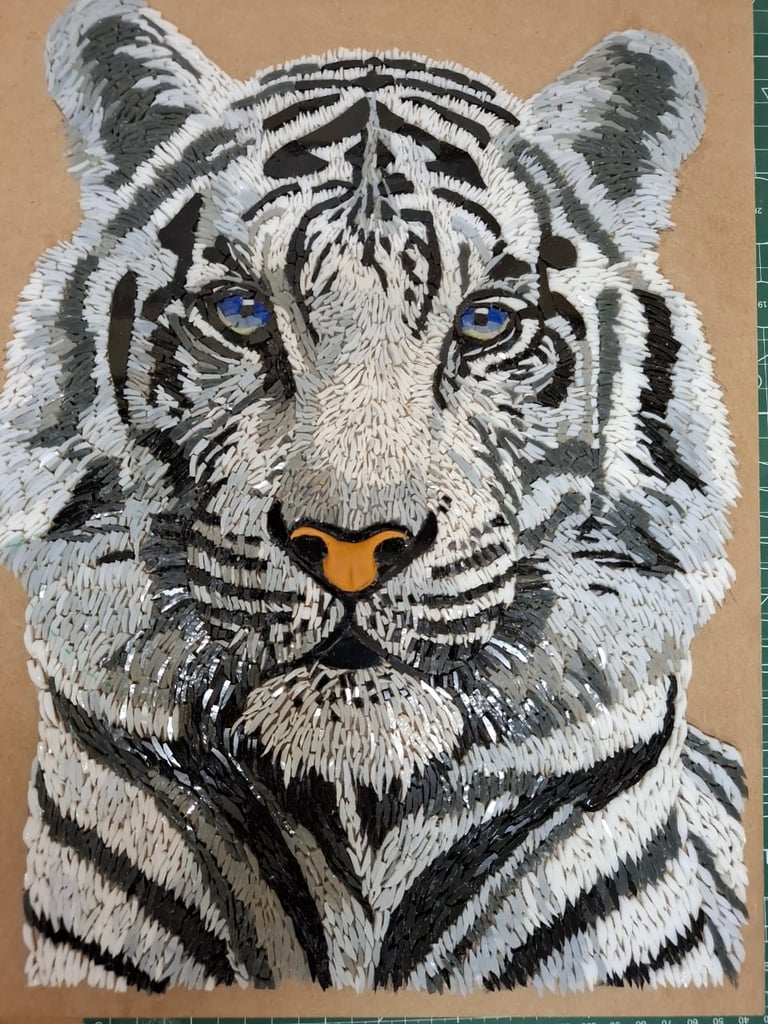 Entrás, apoyás las manos en la mesa y el tiempo se ordena. En Mosaico Club aprendés la técnica desde la base: color, elección de materiales, cortes precisos, andamentos, composición, hasta la terminación de cada pieza.
